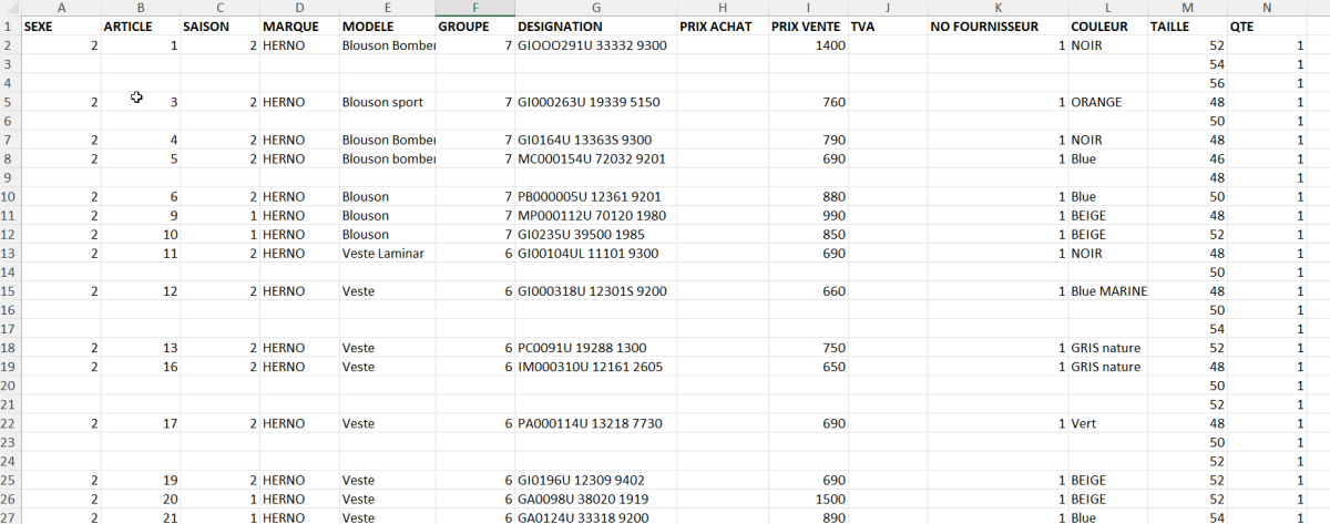 IMPORTANT le fichier doit être du type XL5 pour l'importation.